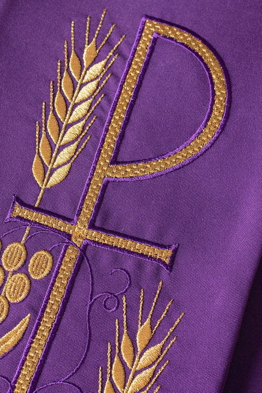 Estola sacerdotal bordada en color con cruz de pan y pez