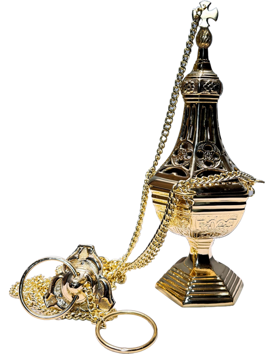 Turíbulos y navetas utilizados en ceremonias litúrgicas para el incienso, símbolo de oración y adoración en la Santa Misa y procesiones.