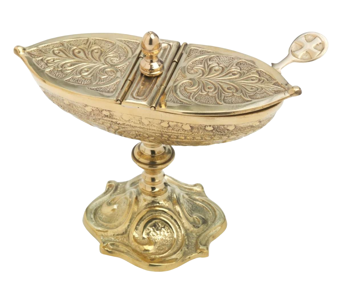 La Naveta Clásica es una obra de arte funcional. Almacena y dispensa incienso con elegancia y facilidad. Agregue un toque de lujo con su cuchara a juego. La naveta es un imprescindible para la celebración de la misa.