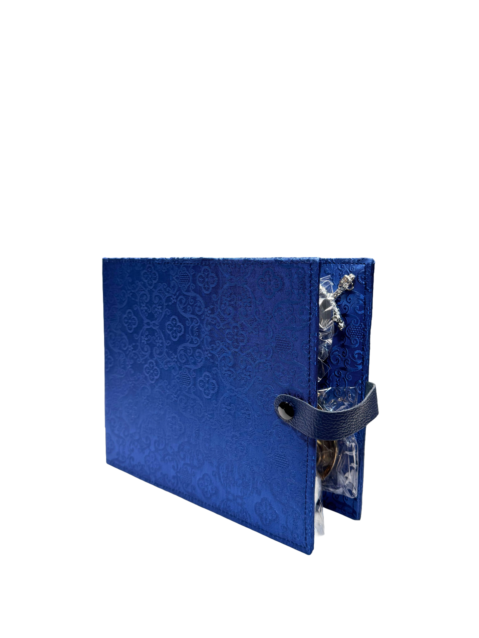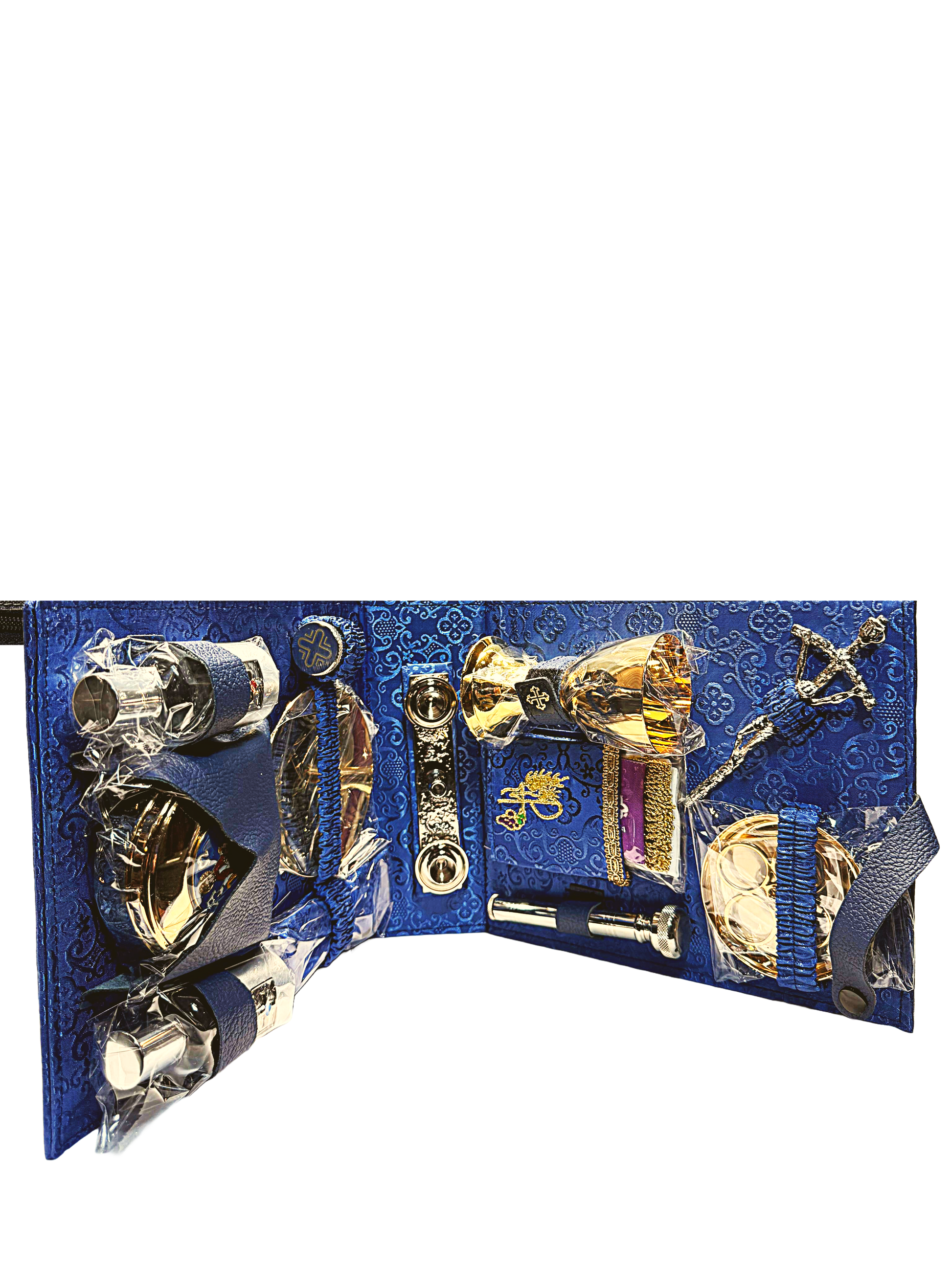 Está equipado con un panel de almacenamiento extraíble, forrado en Satén Azul.
