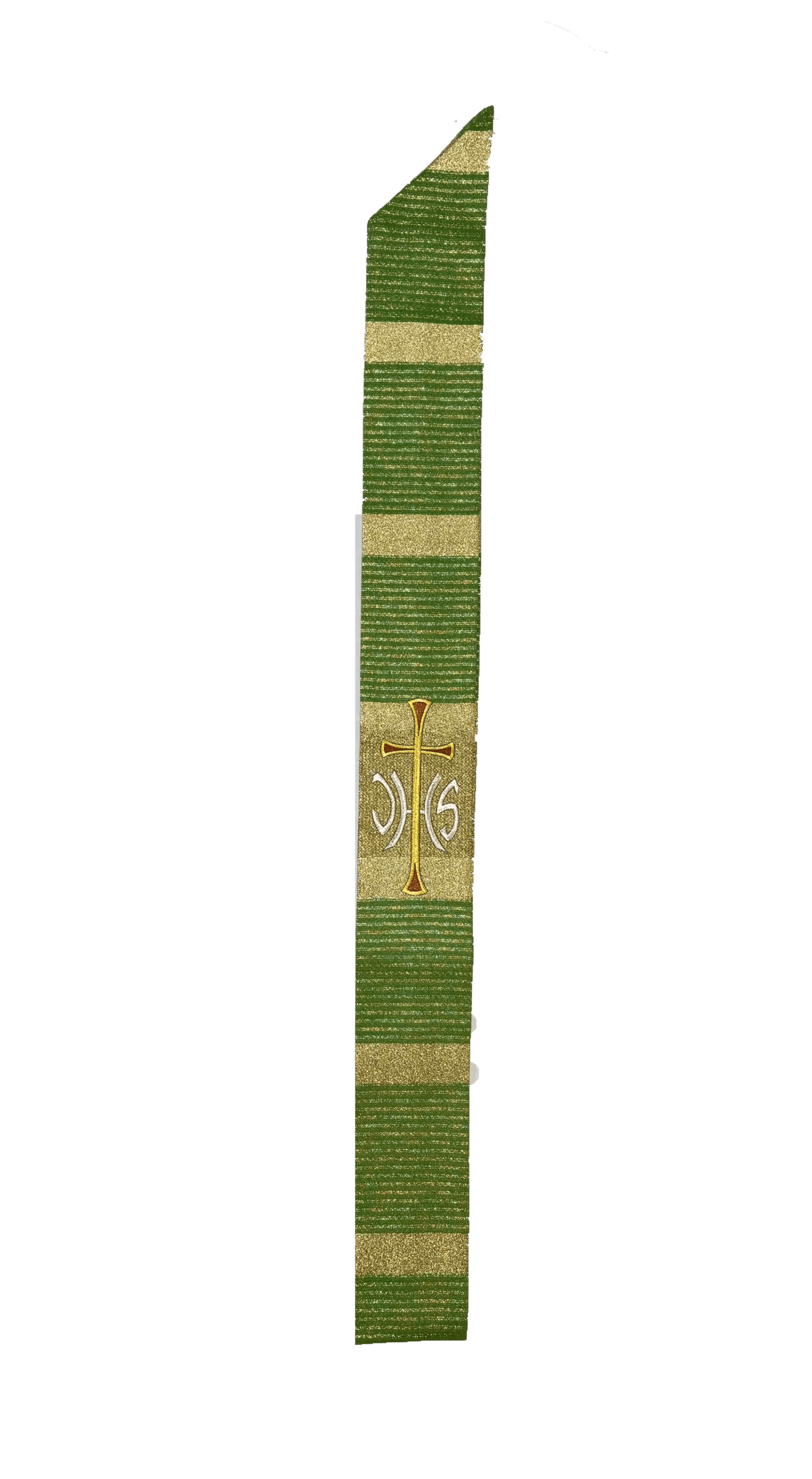 ¡Embellece tu sacerdocio con nuestra estola de lana con hilos de oro bordados! Hecha de lana de alta calidad y decorada con hilos de oro, esta estola es la última disponible en color verde. Añade un toque de elegancia a tus ceremonias con esta pieza única.