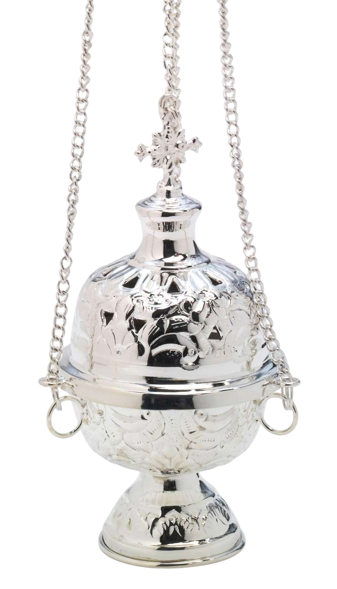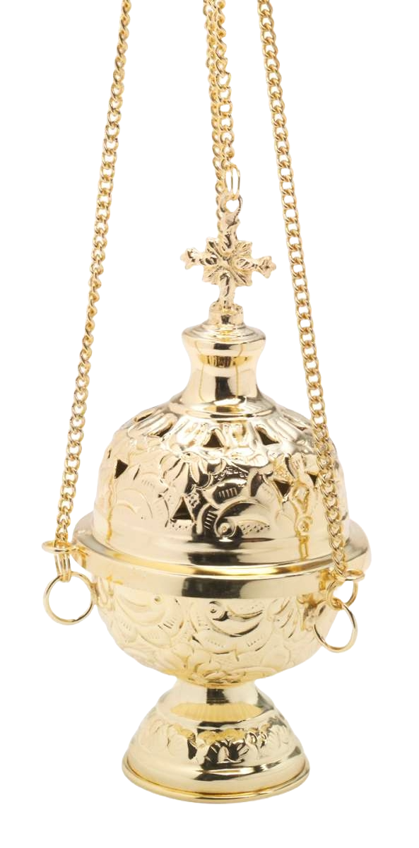 El incensario está hecho de latón y es de color dorado. La altura del incensario es de 18 cm. La superficie es lisa y tiene un patrón fino trabajado en ella. Una carcasa interior está incluida en el alcance de la entrega.