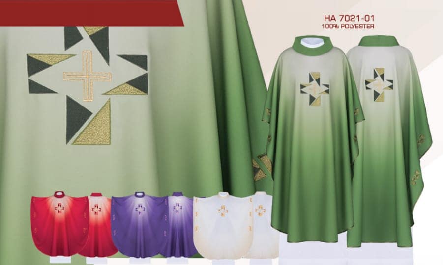 ¡Realza tu oficio sacerdotal con nuestra casulla bordada con diseño de cruz y degradado! Hecha con materiales de alta calidad, esta casulla te mantendrá cómoda y elegante durante tus ceremonias. ¡Agrega un toque de color y espiritualidad a tu guardarropa sacerdotal con nuestra casulla!