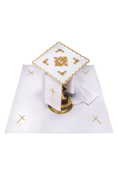 Purificador - Este producto está hecho de tela de algodón de aproximadamente 40 cm de largo y 25 cm de ancho. Está decorado con un bordado que representa cruces de plata y los bordes están ribeteados con un bordado.