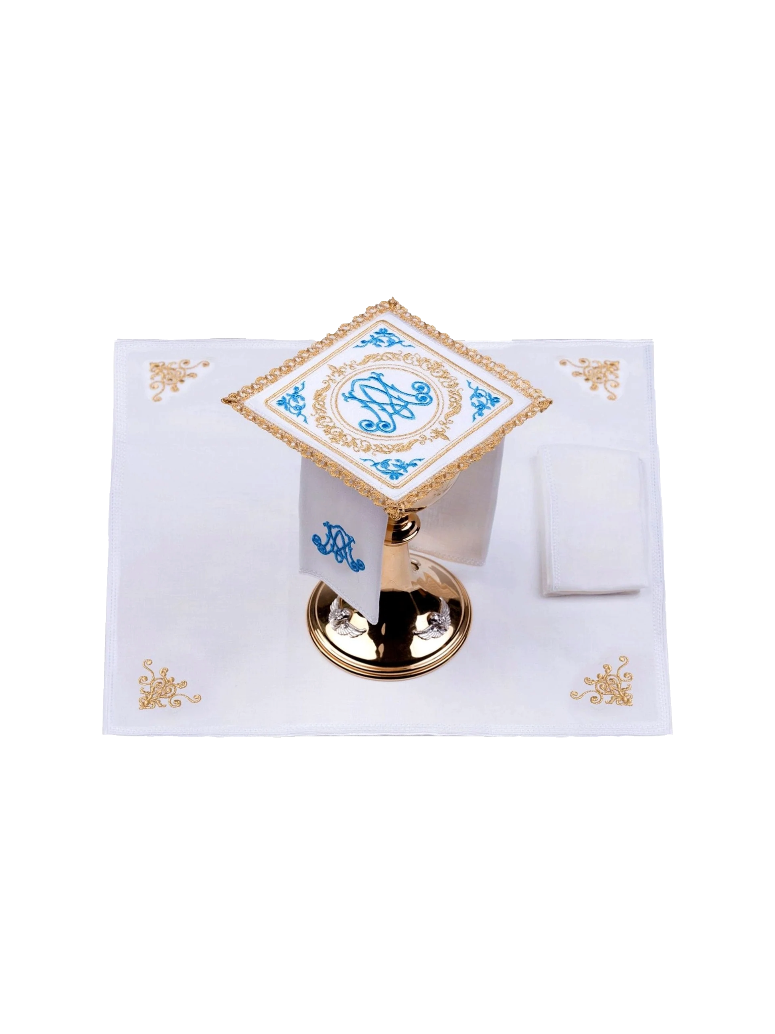 - Corporal - Fabricada de 100% PE lino con un acabado anti manchas. Se bordaron cruces de plata en las esquinas y los bordes estaban adornados con una ola bordada.
