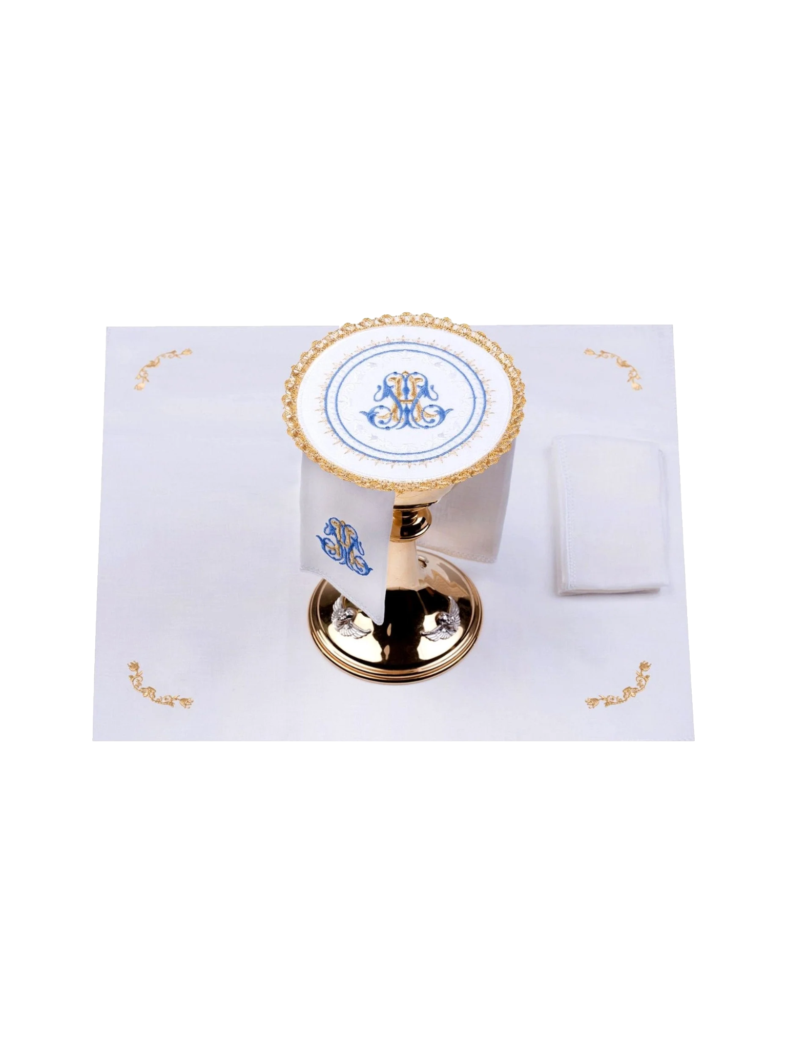 - Corporal - Fabricada de 100% PE lino con un acabado anti manchas. Se bordaron cruces de plata en las esquinas y los bordes estaban adornados con una ola bordada.