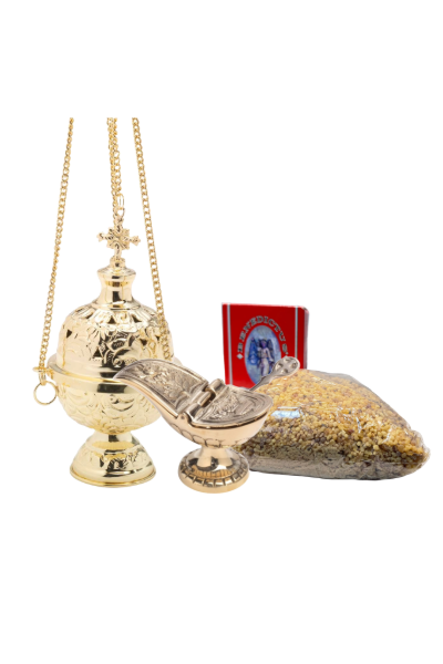 Llévate este hermoso Juego de Turíbulo + Naveta a juego, Además llévate totalmente GRATIS una bolsa de 30 gramos de incienso litúrgico.