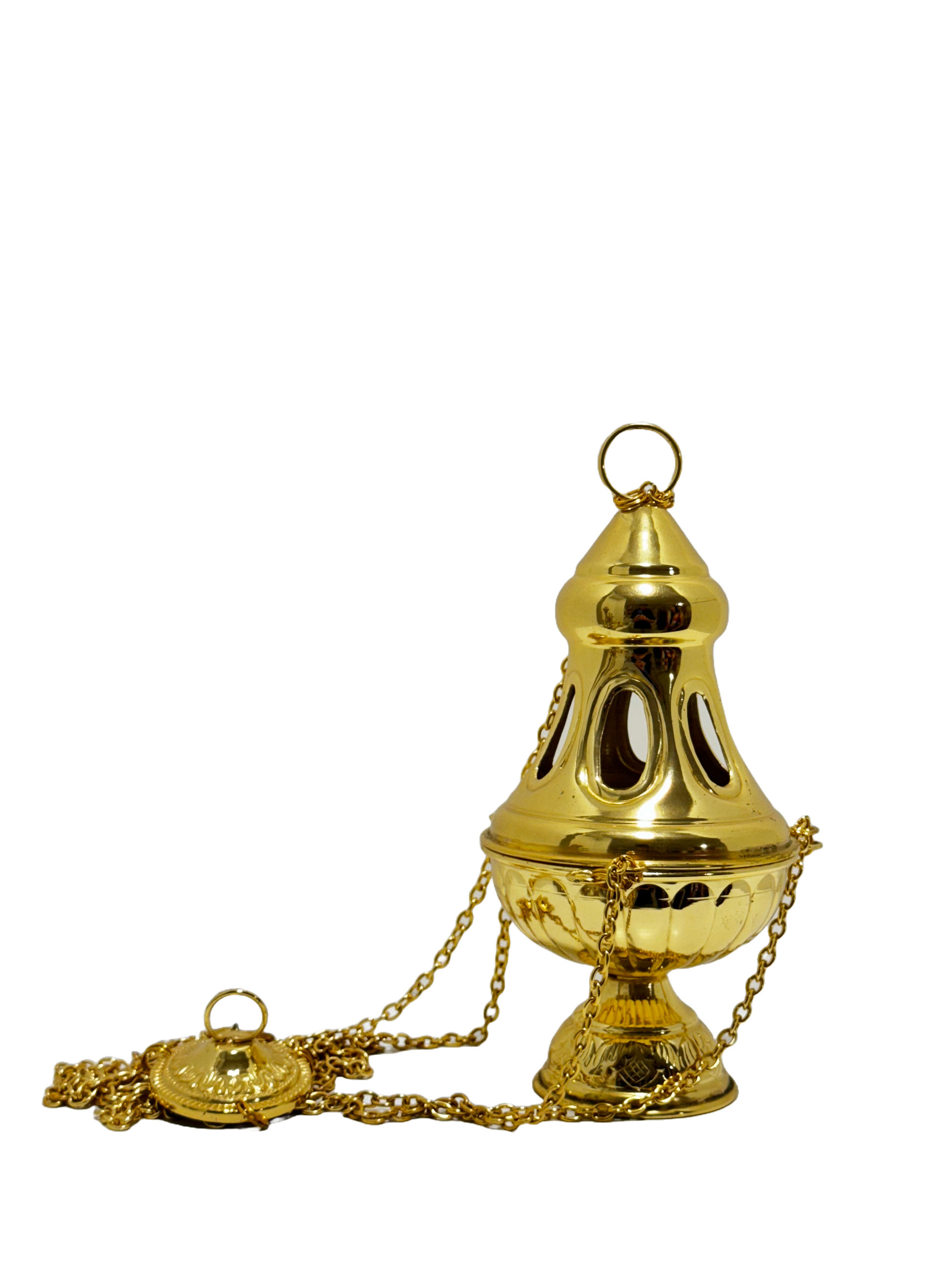 El incensario es un incensario adornado sostenido por una cadena que se usa para quemar incienso.